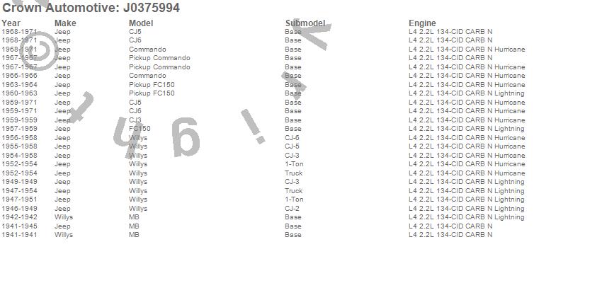 Crown Automotive is the premier manufacturer and distributor of quality replacement parts for Jeep® CJ™, Wrangler™, Cherokee™, Grand Cherokee™, Liberty™, and Commander™."From humble beginnings in 1963 in a small Boston storefront, Crown Automotive has consistently maintained its commitment to offering only quality parts and exceptional service. Today, with warehouses in Massachusetts, Georgia, Nevada, Spain, and the Czech Republic, totaling over 160,000 square feet, Crown Automotive continues to be the leader in quality replacement parts for Jeep® vehicles. With over 8,000 different parts in stock for Jeep® vehicles from 1942 on up, Crown has the largest stock of replacement parts for Jeep® vehicles, including factory-discontinued parts. In fact, many of the older Jeeps are still on (and off) the road thanks to Crown parts. The Crown line consists of axle, body, brake, clutch, cooling, driveline, electrical, engine, exhaust, fuel, steering, suspension, transmission and transfer case components. Crown Automotive also offers an exclusive line of component kits and accessory products. Because we know that Jeeps are driven harder than most other vehicles, we emphasize offering only quality parts. In fact, we test parts on Jeeps before distributing them to our dealers to insure that they meet our standards for quality. Crown also supports its entire line with a 12 month/12,000 mile warranty to insure our dealers and their customers of our commitment to offering quality parts. We know from experience that Jeep® owners would rather pay a little more for a good quality part that's backed by a strong guarantee. But we know that price is important as well. So, not only will you find Crown parts to be of exceptional quality, but you'll find them at a great price too.