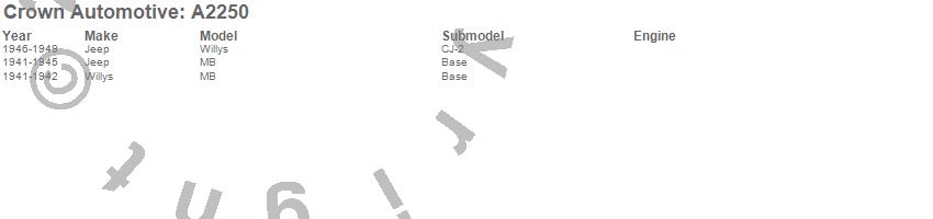 Crown Automotive is the premier manufacturer and distributor of quality replacement parts for Jeep® CJ™, Wrangler™, Cherokee™, Grand Cherokee™, Liberty™, and Commander™."From humble beginnings in 1963 in a small Boston storefront, Crown Automotive has consistently maintained its commitment to offering only quality parts and exceptional service. Today, with warehouses in Massachusetts, Georgia, Nevada, Spain, and the Czech Republic, totaling over 160,000 square feet, Crown Automotive continues to be the leader in quality replacement parts for Jeep® vehicles. With over 8,000 different parts in stock for Jeep® vehicles from 1942 on up, Crown has the largest stock of replacement parts for Jeep® vehicles, including factory-discontinued parts. In fact, many of the older Jeeps are still on (and off) the road thanks to Crown parts. The Crown line consists of axle, body, brake, clutch, cooling, driveline, electrical, engine, exhaust, fuel, steering, suspension, transmission and transfer case components. Crown Automotive also offers an exclusive line of component kits and accessory products. Because we know that Jeeps are driven harder than most other vehicles, we emphasize offering only quality parts. In fact, we test parts on Jeeps before distributing them to our dealers to insure that they meet our standards for quality. Crown also supports its entire line with a 12 month/12,000 mile warranty to insure our dealers and their customers of our commitment to offering quality parts. We know from experience that Jeep® owners would rather pay a little more for a good quality part that's backed by a strong guarantee. But we know that price is important as well. So, not only will you find Crown parts to be of exceptional quality, but you'll find them at a great price too.
