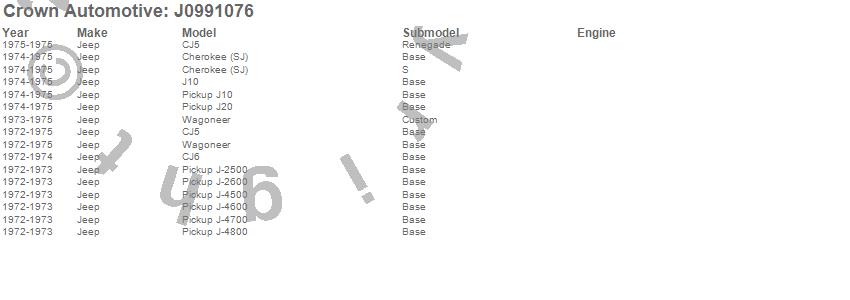 Cherokee (SJ), CJ5, CJ6, J-2500, J-2600, J-4500, J-4600, J-4700, J-4800, J10, J20, Wagoneer, Jeep, 1975, 1974, 1973, 1972 more…