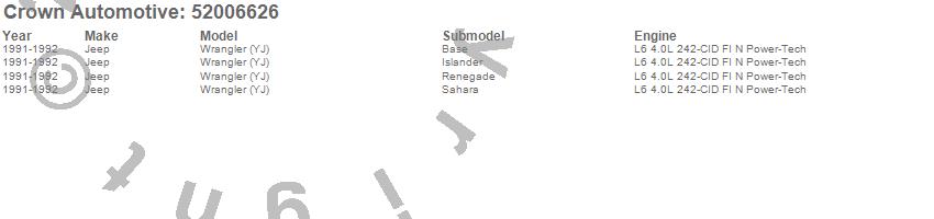 Crown Automotive is the premier manufacturer and distributor of quality replacement parts for Jeep® CJ™, Wrangler™, Cherokee™, Grand Cherokee™, Liberty™, and Commander™."From humble beginnings in 1963 in a small Boston storefront, Crown Automotive has consistently maintained its commitment to offering only quality parts and exceptional service. Today, with warehouses in Massachusetts, Georgia, Nevada, Spain, and the Czech Republic, totaling over 160,000 square feet, Crown Automotive continues to be the leader in quality replacement parts for Jeep® vehicles. With over 8,000 different parts in stock for Jeep® vehicles from 1942 on up, Crown has the largest stock of replacement parts for Jeep® vehicles, including factory-discontinued parts. In fact, many of the older Jeeps are still on (and off) the road thanks to Crown parts. The Crown line consists of axle, body, brake, clutch, cooling, driveline, electrical, engine, exhaust, fuel, steering, suspension, transmission and transfer case components. Crown Automotive also offers an exclusive line of component kits and accessory products. Because we know that Jeeps are driven harder than most other vehicles, we emphasize offering only quality parts. In fact, we test parts on Jeeps before distributing them to our dealers to insure that they meet our standards for quality. Crown also supports its entire line with a 12 month/12,000 mile warranty to insure our dealers and their customers of our commitment to offering quality parts. We know from experience that Jeep® owners would rather pay a little more for a good quality part that's backed by a strong guarantee. But we know that price is important as well. So, not only will you find Crown parts to be of exceptional quality, but you'll find them at a great price too.