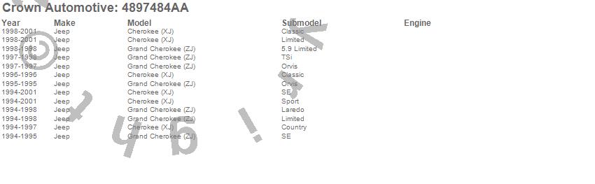 Cherokee (XJ), Grand Cherokee (ZJ), Jeep, 2001, 2000, 1999, 1998, 1997, 1996, 1995, 1994 more…