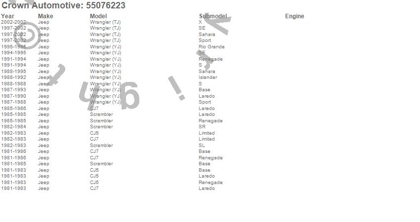 Crown Automotive is the premier manufacturer and distributor of quality replacement parts for Jeep® CJ™, Wrangler™, Cherokee™, Grand Cherokee™, Liberty™, and Commander™."From humble beginnings in 1963 in a small Boston storefront, Crown Automotive has consistently maintained its commitment to offering only quality parts and exceptional service. Today, with warehouses in Massachusetts, Georgia, Nevada, Spain, and the Czech Republic, totaling over 160,000 square feet, Crown Automotive continues to be the leader in quality replacement parts for Jeep® vehicles. With over 8,000 different parts in stock for Jeep® vehicles from 1942 on up, Crown has the largest stock of replacement parts for Jeep® vehicles, including factory-discontinued parts. In fact, many of the older Jeeps are still on (and off) the road thanks to Crown parts. The Crown line consists of axle, body, brake, clutch, cooling, driveline, electrical, engine, exhaust, fuel, steering, suspension, transmission and transfer case components. Crown Automotive also offers an exclusive line of component kits and accessory products. Because we know that Jeeps are driven harder than most other vehicles, we emphasize offering only quality parts. In fact, we test parts on Jeeps before distributing them to our dealers to insure that they meet our standards for quality. Crown also supports its entire line with a 12 month/12,000 mile warranty to insure our dealers and their customers of our commitment to offering quality parts. We know from experience that Jeep® owners would rather pay a little more for a good quality part that's backed by a strong guarantee. But we know that price is important as well. So, not only will you find Crown parts to be of exceptional quality, but you'll find them at a great price too.
