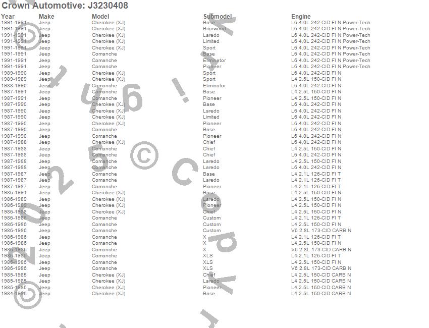 Cherokee (XJ), Comanche, Jeep, 1991, 1990, 1989, 1988, 1987, 1986, 1985, 1984 more…