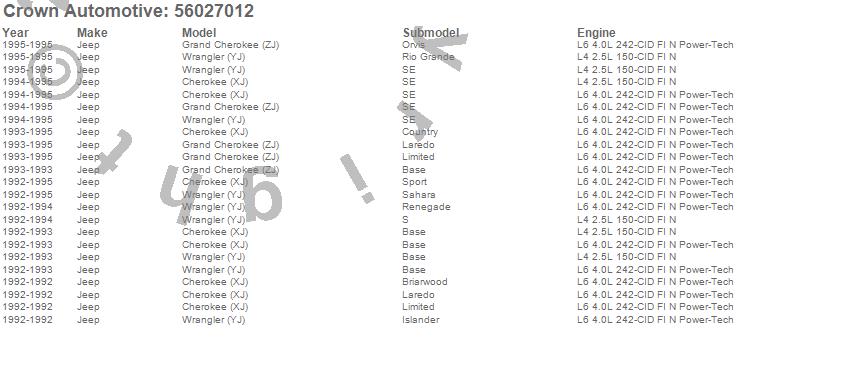 Crown Automotive is the premier manufacturer and distributor of quality replacement parts for Jeep® CJ™, Wrangler™, Cherokee™, Grand Cherokee™, Liberty™, and Commander™."From humble beginnings in 1963 in a small Boston storefront, Crown Automotive has consistently maintained its commitment to offering only quality parts and exceptional service. Today, with warehouses in Massachusetts, Georgia, Nevada, Spain, and the Czech Republic, totaling over 160,000 square feet, Crown Automotive continues to be the leader in quality replacement parts for Jeep® vehicles. With over 8,000 different parts in stock for Jeep® vehicles from 1942 on up, Crown has the largest stock of replacement parts for Jeep® vehicles, including factory-discontinued parts. In fact, many of the older Jeeps are still on (and off) the road thanks to Crown parts. The Crown line consists of axle, body, brake, clutch, cooling, driveline, electrical, engine, exhaust, fuel, steering, suspension, transmission and transfer case components. Crown Automotive also offers an exclusive line of component kits and accessory products. Because we know that Jeeps are driven harder than most other vehicles, we emphasize offering only quality parts. In fact, we test parts on Jeeps before distributing them to our dealers to insure that they meet our standards for quality. Crown also supports its entire line with a 12 month/12,000 mile warranty to insure our dealers and their customers of our commitment to offering quality parts. We know from experience that Jeep® owners would rather pay a little more for a good quality part that's backed by a strong guarantee. But we know that price is important as well. So, not only will you find Crown parts to be of exceptional quality, but you'll find them at a great price too.