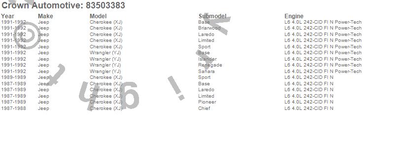 Crown Automotive is the premier manufacturer and distributor of quality replacement parts for Jeep® CJ™, Wrangler™, Cherokee™, Grand Cherokee™, Liberty™, and Commander™."From humble beginnings in 1963 in a small Boston storefront, Crown Automotive has consistently maintained its commitment to offering only quality parts and exceptional service. Today, with warehouses in Massachusetts, Georgia, Nevada, Spain, and the Czech Republic, totaling over 160,000 square feet, Crown Automotive continues to be the leader in quality replacement parts for Jeep® vehicles. With over 8,000 different parts in stock for Jeep® vehicles from 1942 on up, Crown has the largest stock of replacement parts for Jeep® vehicles, including factory-discontinued parts. In fact, many of the older Jeeps are still on (and off) the road thanks to Crown parts. The Crown line consists of axle, body, brake, clutch, cooling, driveline, electrical, engine, exhaust, fuel, steering, suspension, transmission and transfer case components. Crown Automotive also offers an exclusive line of component kits and accessory products. Because we know that Jeeps are driven harder than most other vehicles, we emphasize offering only quality parts. In fact, we test parts on Jeeps before distributing them to our dealers to insure that they meet our standards for quality. Crown also supports its entire line with a 12 month/12,000 mile warranty to insure our dealers and their customers of our commitment to offering quality parts. We know from experience that Jeep® owners would rather pay a little more for a good quality part that's backed by a strong guarantee. But we know that price is important as well. So, not only will you find Crown parts to be of exceptional quality, but you'll find them at a great price too.