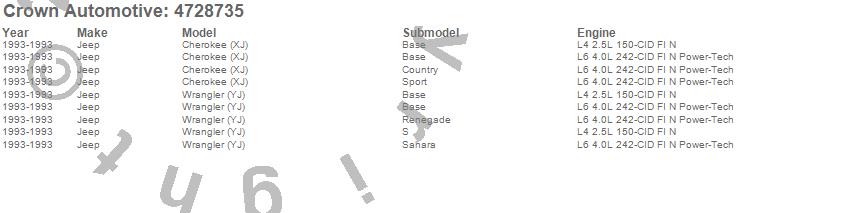 Crown Automotive is the premier manufacturer and distributor of quality replacement parts for Jeep® CJ™, Wrangler™, Cherokee™, Grand Cherokee™, Liberty™, and Commander™."From humble beginnings in 1963 in a small Boston storefront, Crown Automotive has consistently maintained its commitment to offering only quality parts and exceptional service. Today, with warehouses in Massachusetts, Georgia, Nevada, Spain, and the Czech Republic, totaling over 160,000 square feet, Crown Automotive continues to be the leader in quality replacement parts for Jeep® vehicles. With over 8,000 different parts in stock for Jeep® vehicles from 1942 on up, Crown has the largest stock of replacement parts for Jeep® vehicles, including factory-discontinued parts. In fact, many of the older Jeeps are still on (and off) the road thanks to Crown parts. The Crown line consists of axle, body, brake, clutch, cooling, driveline, electrical, engine, exhaust, fuel, steering, suspension, transmission and transfer case components. Crown Automotive also offers an exclusive line of component kits and accessory products. Because we know that Jeeps are driven harder than most other vehicles, we emphasize offering only quality parts. In fact, we test parts on Jeeps before distributing them to our dealers to insure that they meet our standards for quality. Crown also supports its entire line with a 12 month/12,000 mile warranty to insure our dealers and their customers of our commitment to offering quality parts. We know from experience that Jeep® owners would rather pay a little more for a good quality part that's backed by a strong guarantee. But we know that price is important as well. So, not only will you find Crown parts to be of exceptional quality, but you'll find them at a great price too.