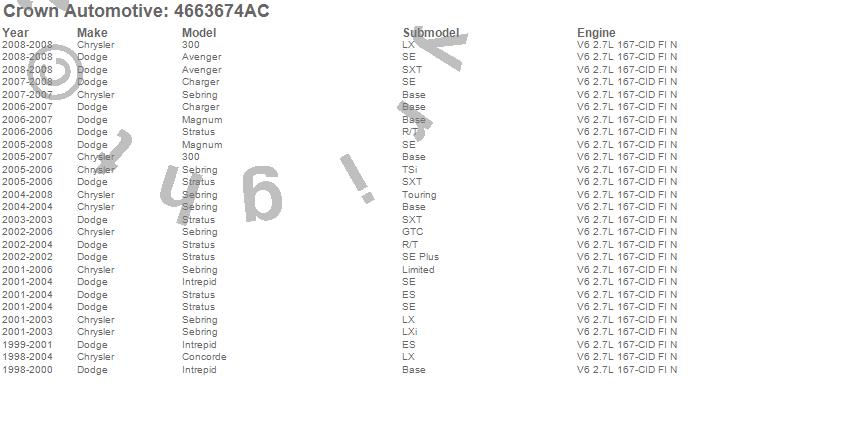 300, Avenger, Charger, Concorde, Intrepid, Magnum, Sebring, Stratus, Chrysler, Dodge, 2008, 2007, 2006, 2005, 2004, 2003, 2002, 2001, 2000, 1999 more…