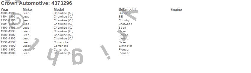 Crown Automotive is the premier manufacturer and distributor of quality replacement parts for Jeep® CJ™, Wrangler™, Cherokee™, Grand Cherokee™, Liberty™, and Commander™."From humble beginnings in 1963 in a small Boston storefront, Crown Automotive has consistently maintained its commitment to offering only quality parts and exceptional service. Today, with warehouses in Massachusetts, Georgia, Nevada, Spain, and the Czech Republic, totaling over 160,000 square feet, Crown Automotive continues to be the leader in quality replacement parts for Jeep® vehicles. With over 8,000 different parts in stock for Jeep® vehicles from 1942 on up, Crown has the largest stock of replacement parts for Jeep® vehicles, including factory-discontinued parts. In fact, many of the older Jeeps are still on (and off) the road thanks to Crown parts. The Crown line consists of axle, body, brake, clutch, cooling, driveline, electrical, engine, exhaust, fuel, steering, suspension, transmission and transfer case components. Crown Automotive also offers an exclusive line of component kits and accessory products. Because we know that Jeeps are driven harder than most other vehicles, we emphasize offering only quality parts. In fact, we test parts on Jeeps before distributing them to our dealers to insure that they meet our standards for quality. Crown also supports its entire line with a 12 month/12,000 mile warranty to insure our dealers and their customers of our commitment to offering quality parts. We know from experience that Jeep® owners would rather pay a little more for a good quality part that's backed by a strong guarantee. But we know that price is important as well. So, not only will you find Crown parts to be of exceptional quality, but you'll find them at a great price too.