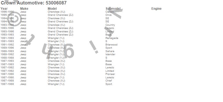 Cherokee (XJ), Grand Cherokee (ZJ), Wrangler (YJ), Jeep, 1996, 1995, 1994, 1993, 1992, 1991, 1990, 1989, 1988, 1987 more…
