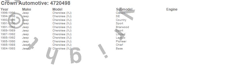 Crown Automotive is the premier manufacturer and distributor of quality replacement parts for Jeep® CJ™, Wrangler™, Cherokee™, Grand Cherokee™, Liberty™, and Commander™."From humble beginnings in 1963 in a small Boston storefront, Crown Automotive has consistently maintained its commitment to offering only quality parts and exceptional service. Today, with warehouses in Massachusetts, Georgia, Nevada, Spain, and the Czech Republic, totaling over 160,000 square feet, Crown Automotive continues to be the leader in quality replacement parts for Jeep® vehicles. With over 8,000 different parts in stock for Jeep® vehicles from 1942 on up, Crown has the largest stock of replacement parts for Jeep® vehicles, including factory-discontinued parts. In fact, many of the older Jeeps are still on (and off) the road thanks to Crown parts. The Crown line consists of axle, body, brake, clutch, cooling, driveline, electrical, engine, exhaust, fuel, steering, suspension, transmission and transfer case components. Crown Automotive also offers an exclusive line of component kits and accessory products. Because we know that Jeeps are driven harder than most other vehicles, we emphasize offering only quality parts. In fact, we test parts on Jeeps before distributing them to our dealers to insure that they meet our standards for quality. Crown also supports its entire line with a 12 month/12,000 mile warranty to insure our dealers and their customers of our commitment to offering quality parts. We know from experience that Jeep® owners would rather pay a little more for a good quality part that's backed by a strong guarantee. But we know that price is important as well. So, not only will you find Crown parts to be of exceptional quality, but you'll find them at a great price too.