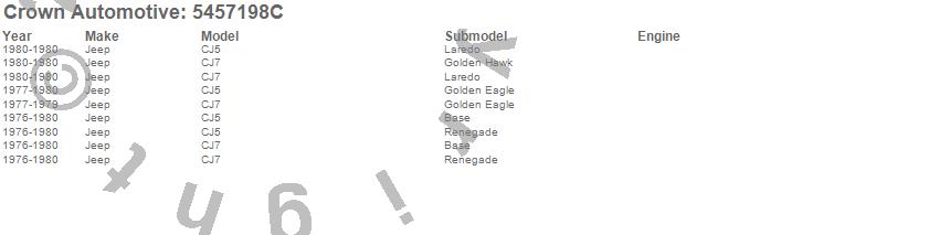 Crown Automotive is the premier manufacturer and distributor of quality replacement parts for Jeep® CJ™, Wrangler™, Cherokee™, Grand Cherokee™, Liberty™, and Commander™."From humble beginnings in 1963 in a small Boston storefront, Crown Automotive has consistently maintained its commitment to offering only quality parts and exceptional service. Today, with warehouses in Massachusetts, Georgia, Nevada, Spain, and the Czech Republic, totaling over 160,000 square feet, Crown Automotive continues to be the leader in quality replacement parts for Jeep® vehicles. With over 8,000 different parts in stock for Jeep® vehicles from 1942 on up, Crown has the largest stock of replacement parts for Jeep® vehicles, including factory-discontinued parts. In fact, many of the older Jeeps are still on (and off) the road thanks to Crown parts. The Crown line consists of axle, body, brake, clutch, cooling, driveline, electrical, engine, exhaust, fuel, steering, suspension, transmission and transfer case components. Crown Automotive also offers an exclusive line of component kits and accessory products. Because we know that Jeeps are driven harder than most other vehicles, we emphasize offering only quality parts. In fact, we test parts on Jeeps before distributing them to our dealers to insure that they meet our standards for quality. Crown also supports its entire line with a 12 month/12,000 mile warranty to insure our dealers and their customers of our commitment to offering quality parts. We know from experience that Jeep® owners would rather pay a little more for a good quality part that's backed by a strong guarantee. But we know that price is important as well. So, not only will you find Crown parts to be of exceptional quality, but you'll find them at a great price too.