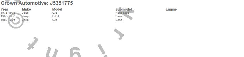 Crown Automotive is the premier manufacturer and distributor of quality replacement parts for Jeep® CJ™, Wrangler™, Cherokee™, Grand Cherokee™, Liberty™, and Commander™."From humble beginnings in 1963 in a small Boston storefront, Crown Automotive has consistently maintained its commitment to offering only quality parts and exceptional service. Today, with warehouses in Massachusetts, Georgia, Nevada, Spain, and the Czech Republic, totaling over 160,000 square feet, Crown Automotive continues to be the leader in quality replacement parts for Jeep® vehicles. With over 8,000 different parts in stock for Jeep® vehicles from 1942 on up, Crown has the largest stock of replacement parts for Jeep® vehicles, including factory-discontinued parts. In fact, many of the older Jeeps are still on (and off) the road thanks to Crown parts. The Crown line consists of axle, body, brake, clutch, cooling, driveline, electrical, engine, exhaust, fuel, steering, suspension, transmission and transfer case components. Crown Automotive also offers an exclusive line of component kits and accessory products. Because we know that Jeeps are driven harder than most other vehicles, we emphasize offering only quality parts. In fact, we test parts on Jeeps before distributing them to our dealers to insure that they meet our standards for quality. Crown also supports its entire line with a 12 month/12,000 mile warranty to insure our dealers and their customers of our commitment to offering quality parts. We know from experience that Jeep® owners would rather pay a little more for a good quality part that's backed by a strong guarantee. But we know that price is important as well. So, not only will you find Crown parts to be of exceptional quality, but you'll find them at a great price too.