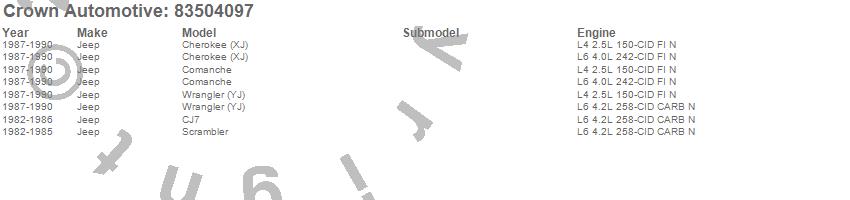 Cherokee (XJ), CJ7, Comanche, Scrambler, Wrangler (YJ), Jeep, 1990, 1989, 1988, 1987, 1986, 1985, 1984, 1983, 1982 more…
