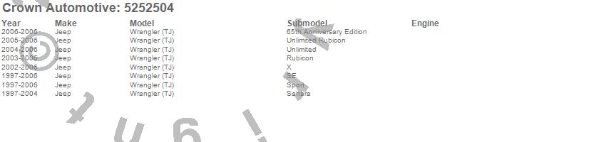 Crown Automotive is the premier manufacturer and distributor of quality replacement parts for Jeep® CJ™, Wrangler™, Cherokee™, Grand Cherokee™, Liberty™, and Commander™."From humble beginnings in 1963 in a small Boston storefront, Crown Automotive has consistently maintained its commitment to offering only quality parts and exceptional service. Today, with warehouses in Massachusetts, Georgia, Nevada, Spain, and the Czech Republic, totaling over 160,000 square feet, Crown Automotive continues to be the leader in quality replacement parts for Jeep® vehicles. With over 8,000 different parts in stock for Jeep® vehicles from 1942 on up, Crown has the largest stock of replacement parts for Jeep® vehicles, including factory-discontinued parts. In fact, many of the older Jeeps are still on (and off) the road thanks to Crown parts. The Crown line consists of axle, body, brake, clutch, cooling, driveline, electrical, engine, exhaust, fuel, steering, suspension, transmission and transfer case components. Crown Automotive also offers an exclusive line of component kits and accessory products. Because we know that Jeeps are driven harder than most other vehicles, we emphasize offering only quality parts. In fact, we test parts on Jeeps before distributing them to our dealers to insure that they meet our standards for quality. Crown also supports its entire line with a 12 month/12,000 mile warranty to insure our dealers and their customers of our commitment to offering quality parts. We know from experience that Jeep® owners would rather pay a little more for a good quality part that's backed by a strong guarantee. But we know that price is important as well. So, not only will you find Crown parts to be of exceptional quality, but you'll find them at a great price too.