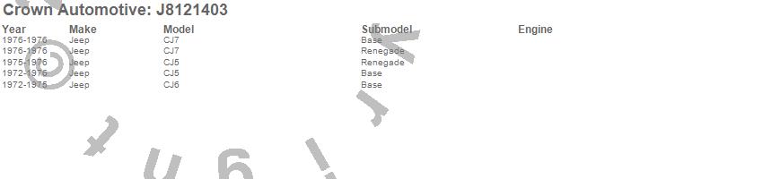 Crown Automotive is the premier manufacturer and distributor of quality replacement parts for Jeep® CJ™, Wrangler™, Cherokee™, Grand Cherokee™, Liberty™, and Commander™."From humble beginnings in 1963 in a small Boston storefront, Crown Automotive has consistently maintained its commitment to offering only quality parts and exceptional service. Today, with warehouses in Massachusetts, Georgia, Nevada, Spain, and the Czech Republic, totaling over 160,000 square feet, Crown Automotive continues to be the leader in quality replacement parts for Jeep® vehicles. With over 8,000 different parts in stock for Jeep® vehicles from 1942 on up, Crown has the largest stock of replacement parts for Jeep® vehicles, including factory-discontinued parts. In fact, many of the older Jeeps are still on (and off) the road thanks to Crown parts. The Crown line consists of axle, body, brake, clutch, cooling, driveline, electrical, engine, exhaust, fuel, steering, suspension, transmission and transfer case components. Crown Automotive also offers an exclusive line of component kits and accessory products. Because we know that Jeeps are driven harder than most other vehicles, we emphasize offering only quality parts. In fact, we test parts on Jeeps before distributing them to our dealers to insure that they meet our standards for quality. Crown also supports its entire line with a 12 month/12,000 mile warranty to insure our dealers and their customers of our commitment to offering quality parts. We know from experience that Jeep® owners would rather pay a little more for a good quality part that's backed by a strong guarantee. But we know that price is important as well. So, not only will you find Crown parts to be of exceptional quality, but you'll find them at a great price too.