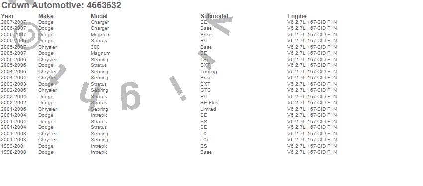 300, Charger, Intrepid, Magnum, Sebring, Stratus, Chrysler, Dodge, 2007, 2006, 2005, 2004, 2003, 2002, 2001, 2000, 1999, 1998 more…