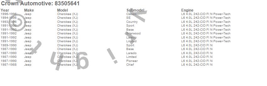 Cherokee (XJ), Jeep, 1996, 1995, 1994, 1993, 1992, 1991, 1990, 1989, 1988, 1987 more…