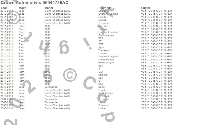 1500, 2500, 3500, Commander, Grand Cherokee (WK), Grand Cherokee (WK2), Jeep, Ram, 2012, 2011, 2010, 2009, 2008, 2007, 2006, 2005 more…
