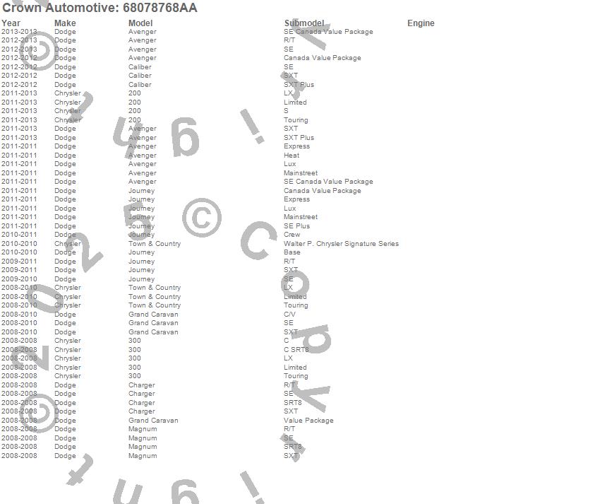 200, 300, Avenger, Caliber, Caravan, Charger, Grand Caravan, Journey, Magnum, Town & Country, Chrysler, Dodge, 2013, 2012, 2011, 2010, 2009, 2008 more…