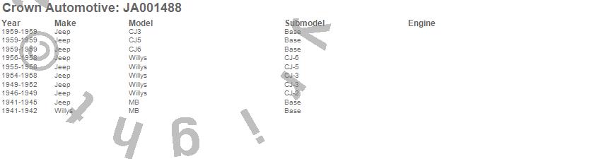 Crown Automotive is the premier manufacturer and distributor of quality replacement parts for Jeep® CJ™, Wrangler™, Cherokee™, Grand Cherokee™, Liberty™, and Commander™."From humble beginnings in 1963 in a small Boston storefront, Crown Automotive has consistently maintained its commitment to offering only quality parts and exceptional service. Today, with warehouses in Massachusetts, Georgia, Nevada, Spain, and the Czech Republic, totaling over 160,000 square feet, Crown Automotive continues to be the leader in quality replacement parts for Jeep® vehicles. With over 8,000 different parts in stock for Jeep® vehicles from 1942 on up, Crown has the largest stock of replacement parts for Jeep® vehicles, including factory-discontinued parts. In fact, many of the older Jeeps are still on (and off) the road thanks to Crown parts. The Crown line consists of axle, body, brake, clutch, cooling, driveline, electrical, engine, exhaust, fuel, steering, suspension, transmission and transfer case components. Crown Automotive also offers an exclusive line of component kits and accessory products. Because we know that Jeeps are driven harder than most other vehicles, we emphasize offering only quality parts. In fact, we test parts on Jeeps before distributing them to our dealers to insure that they meet our standards for quality. Crown also supports its entire line with a 12 month/12,000 mile warranty to insure our dealers and their customers of our commitment to offering quality parts. We know from experience that Jeep® owners would rather pay a little more for a good quality part that's backed by a strong guarantee. But we know that price is important as well. So, not only will you find Crown parts to be of exceptional quality, but you'll find them at a great price too.