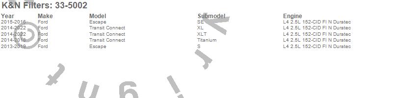 K&N Filters Air Filter 33-5002 Features: