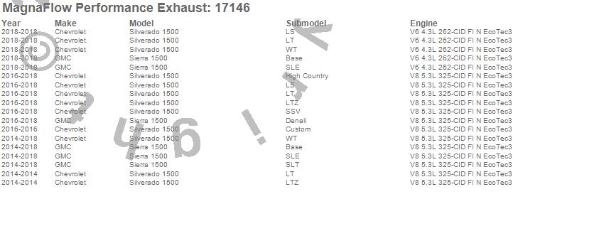 Below is an abreviated list of applications for the Off Road Pro Series Cat-Back Exhaust System.