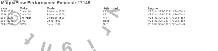 Below is an abreviated list of applications for the Off Road Pro Series Cat-Back Exhaust System.