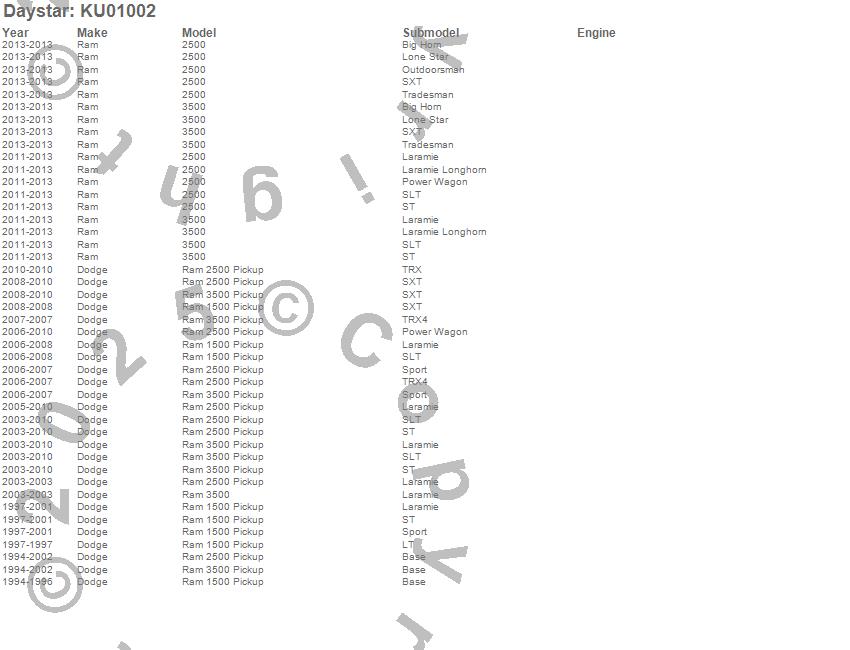 Below is an abreviated list of applications for the Shock Absorber. 2500, 3500, Ram 1500, Ram 2500, Ram 3500, Dodge, Ram, 2013, 2012, 2011, 2010, 2009, 2008, 2007, 2006, 2005, 2004, 2003, 2002, 2001 more…