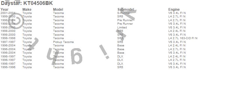 Tacoma, Toyota, 2004, 2003, 2002, 2001, 2000, 1999, 1998, 1997, 1996 more…