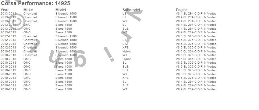 Below is an abreviated list of applications for the Sport Cat-Back Exhaust System.