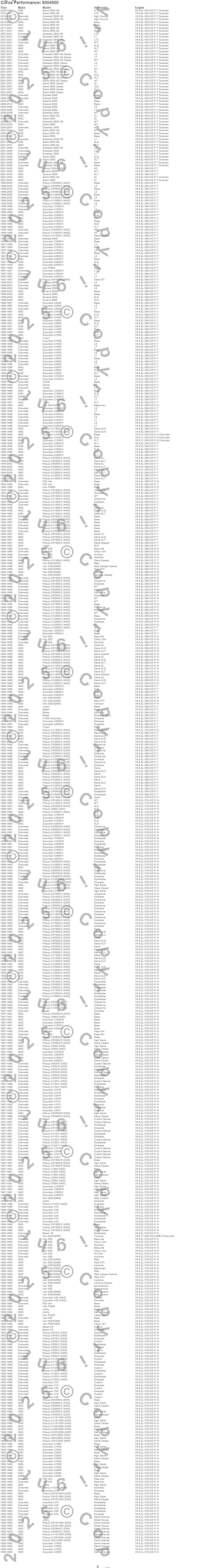Blazer, Blazer K5, C10 Pickup, C10 Suburban, C15/C1500, C1500, C1500 Pickup, C1500 Suburban, C20 Pickup, C20 Suburban, C2500 Pickup, C2500 Suburban, C30 Pickup, C3500 Pickup, Express 2500, Express 3500, G20 Van, G25/G2500 Van, G30 Van, G35/G3500 Van more...