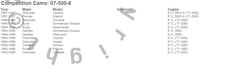 Below is an abreviated list of applications for the Xtreme RPM Camshaft.