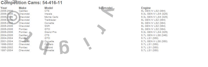 Below is an abreviated list of applications for the Xtreme RPM Camshaft.