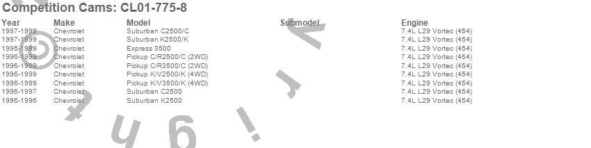 Below is an abreviated list of applications for the Xtreme Energy Camshaft/Lifter Kit.