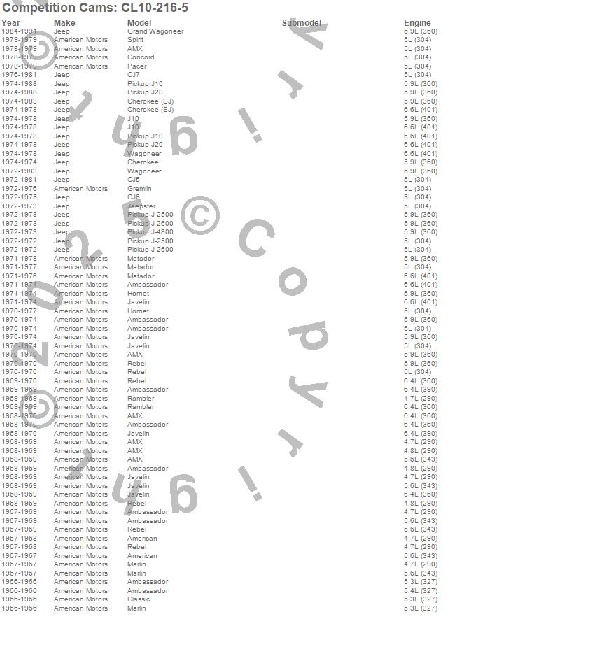 Below is an abreviated list of applications for the Xtreme Energy Camshaft/Lifter Kit.