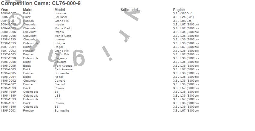 Below is an abreviated list of applications for the Xtreme Energy Camshaft/Lifter Kit.