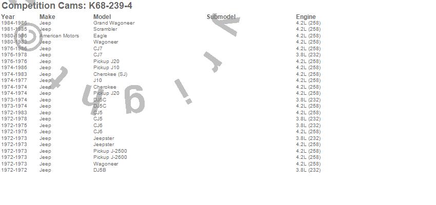 Below is an abreviated list of applications for the Xtreme 4 X 4 Camshaft Kit.