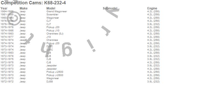 Below is an abreviated list of applications for the Xtreme 4 X 4 Camshaft Kit.