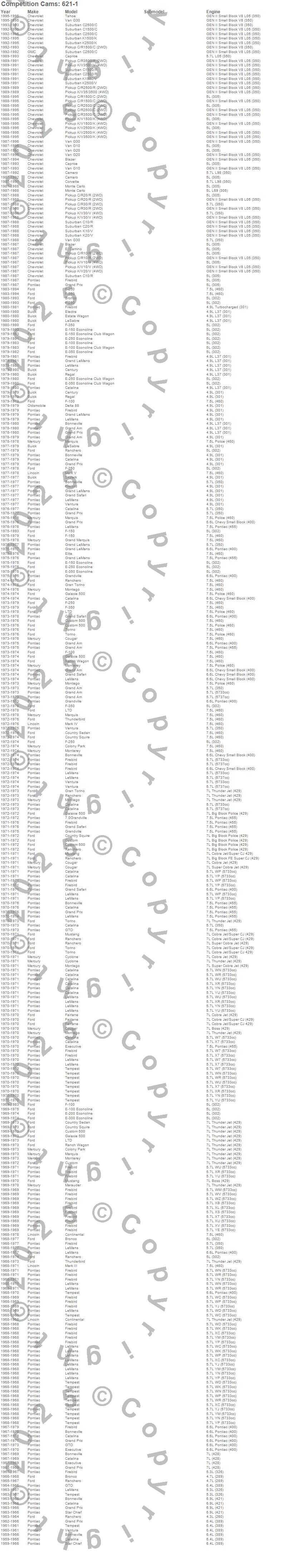 Blazer, Bonneville, Bronco, C1500, C1500 Pickup, C1500 Suburban, C2500 Pickup, C2500 Suburban, C3500 Pickup, Camaro, Caprice, Catalina, Catalina Ventura, Century, Club Cargo, Colony Park, Continental, Corvette, Cougar, Country Sedan more…