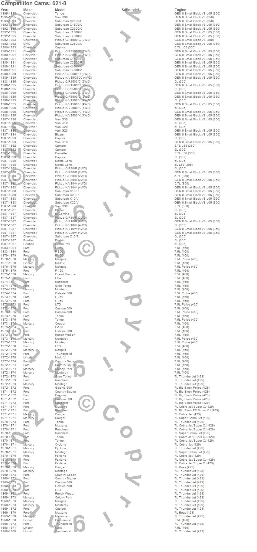 Blazer, C1500, C1500 Pickup, C1500 Suburban, C2500 Pickup, C2500 Suburban, C3500 Pickup, Camaro, Caprice, Colony Park, Continental, Corvette, Cougar, Country Sedan, Country Squire, Custom, Custom 500, Cyclone, El Camino, Elite more…