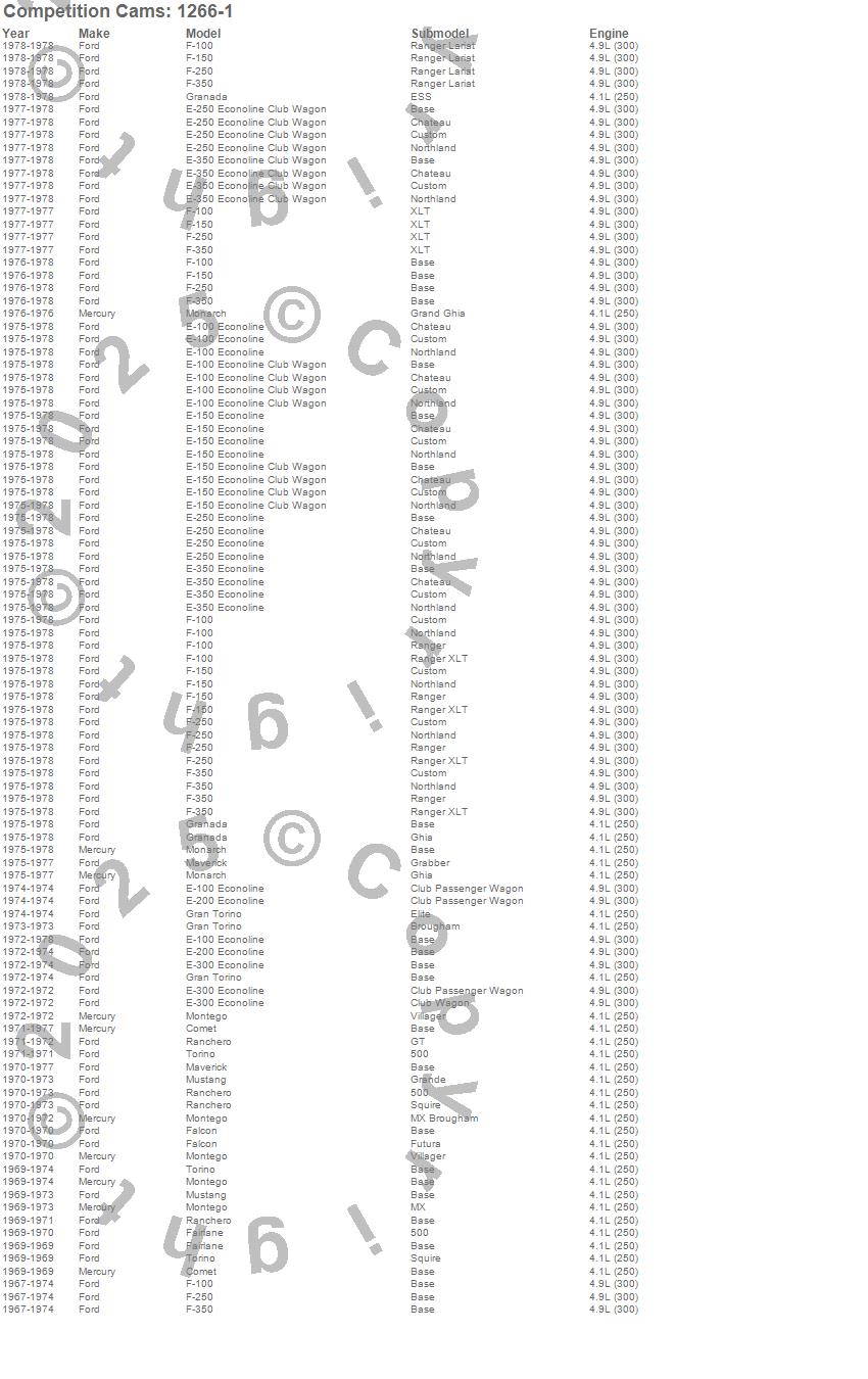 Comet, E-100 Econoline, E-150 Econoline, E-200 Econoline, E-250 Econoline, E-300 Econoline, E-350 Econoline, F-100, F-150, F-250, F-350, Fairlane, Falcon, Gran Torino, Granada, Maverick, Monarch, Montego, Mustang, Ranchero more…