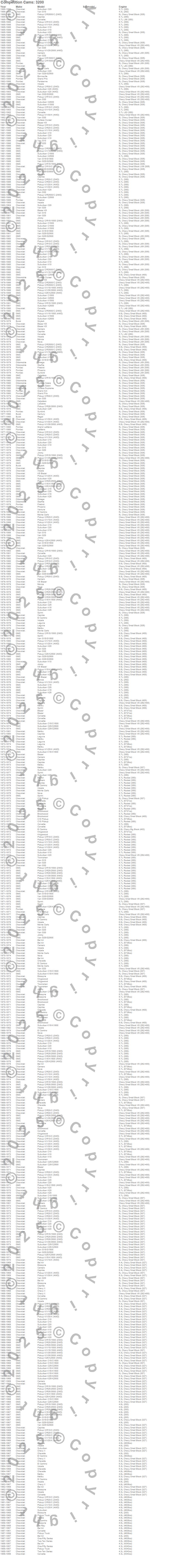 Bel Air, Biscayne, Blazer, Blazer K5, Bonneville, Brookwood, C10 Pickup, C10 Suburban, C15 Suburban, C15/C1500, C15/C1500 Suburban, C1500, C1500 Suburban, C20 Pickup, C20 Suburban, C25 Suburban, C25/C2500 Pickup, C25/C2500 Suburban, C2500 Pickup, C2500 Suburban more…