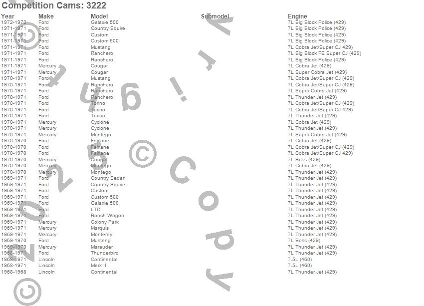 Colony Park, Continental, Cougar, Country Sedan, Country Squire, Custom, Custom 500, Cyclone, Fairlane, Galaxie 500, LTD, Marauder, Mark III, Marquis, Montego, Monterey, Mustang, Ranch Wagon, Ranchero, Thunderbird more…