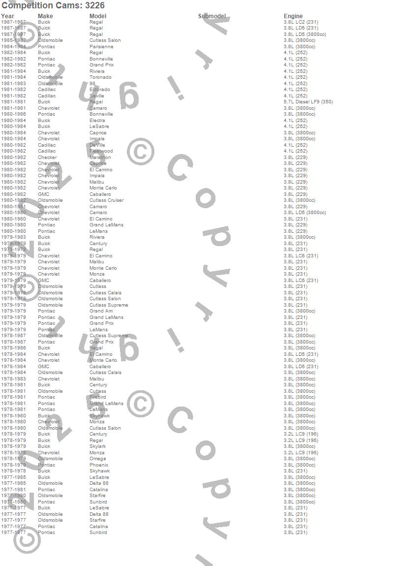 98, Bonneville, Caballero, Camaro, Caprice, Catalina, Century, Cutlass, Cutlass Calais, Cutlass Cruiser, Cutlass Salon, Cutlass Supreme, Delta 88, DeVille, El Camino, Eldorado, Electra, Firebird, Fleetwood, Grand Am more…