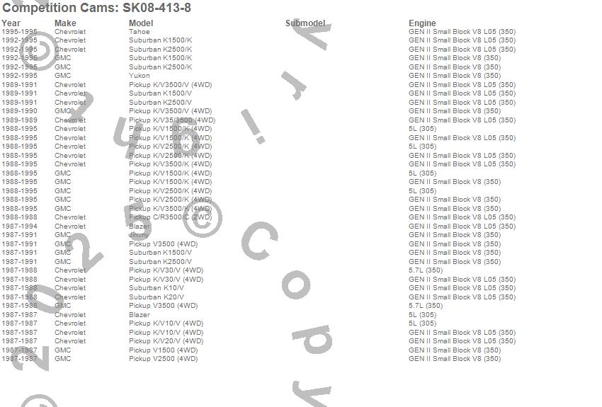 Below is an abreviated list of applications for the Xtreme 4 X 4 Camshaft Small Kit.