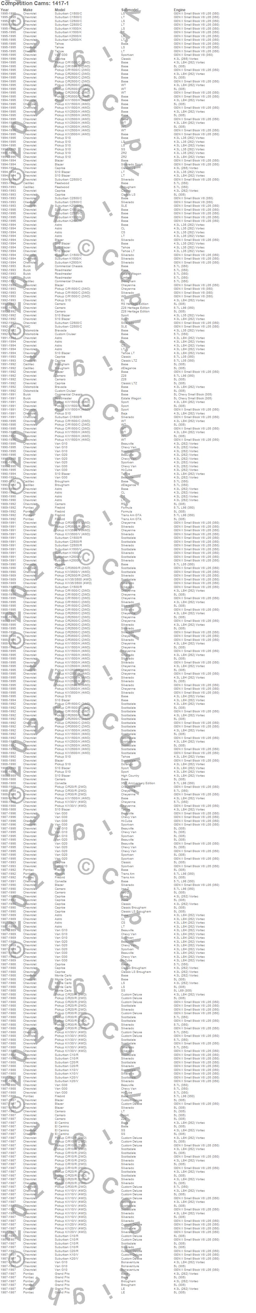 Astro, Blazer, Bravada, C1500, C1500 Pickup, C1500 Suburban, C2500 Pickup, C2500 Suburban, C3500 Pickup, Camaro, Caprice, Corvette, El Camino, Firebird, G10, G10 Van, G20, G20 Van, G30, G30 Van more…