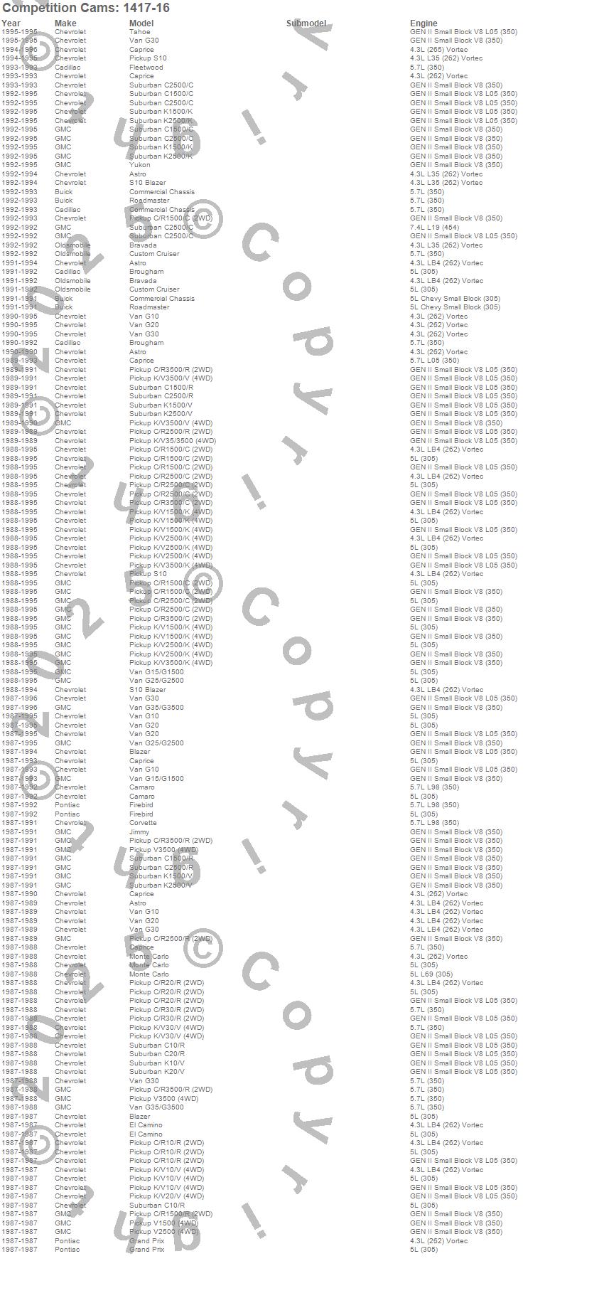 Blazer, C1500, C1500 Pickup, C1500 Suburban, C2500 Pickup, C2500 Suburban, C3500 Pickup, Camaro, Caprice, Corvette, El Camino, Firebird, G10, G10 Van, G15/G1500 Van, G20, G20 Van, G25/G2500 Van, G30, G30 Van more…