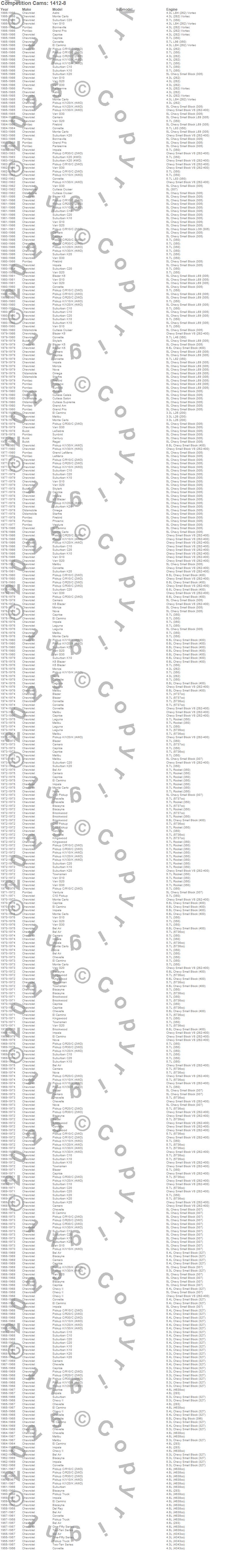 Bel Air, Biscayne, Blazer, Blazer K5, Bonneville, Brookwood, C10 Pickup, C10 Suburban, C20 Pickup, C20 Suburban, C30 Pickup, Camaro, Caprice, Century, Chevelle, Chevy II, Corvette, Cutlass, Cutlass Calais, Cutlass Cruiser more…