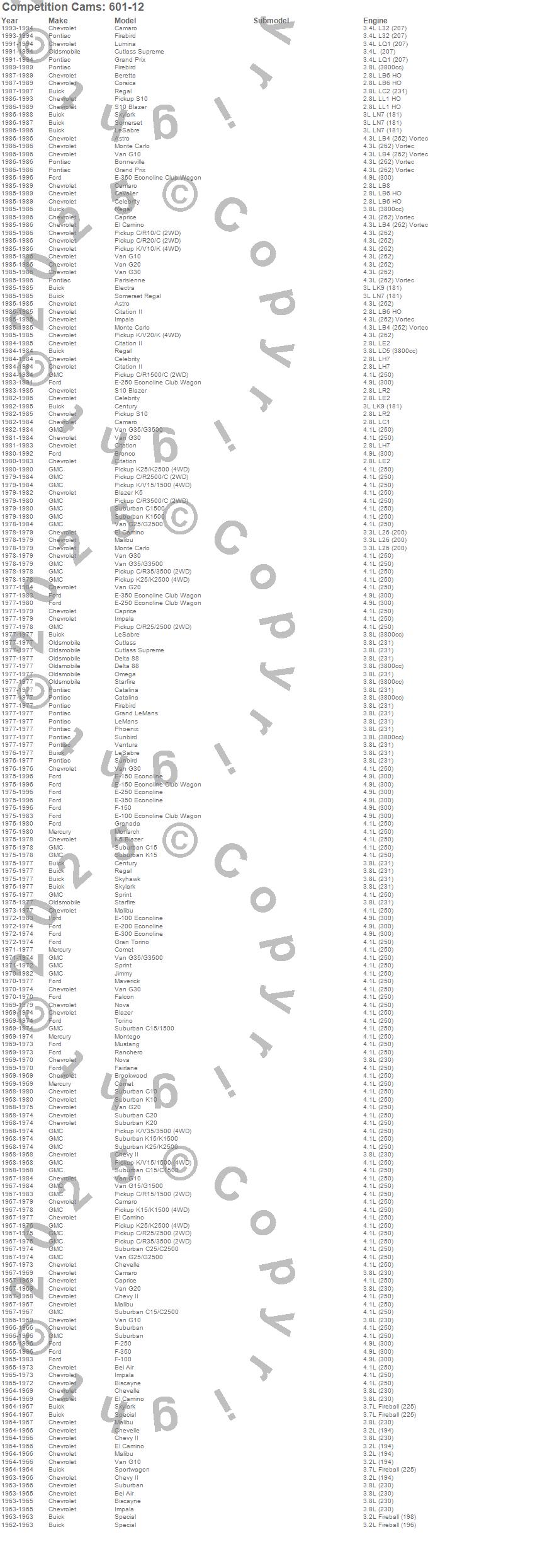 Astro, Bel Air, Beretta, Biscayne, Blazer, Blazer K5, Bonneville, Bronco, Brookwood, C10 Pickup, C10 Suburban, C15 Suburban, C15/C1500, C15/C1500 Suburban, C1500, C1500 Suburban, C20 Pickup, C20 Suburban, C25/C2500 Pickup, C25/C2500 Suburban more…