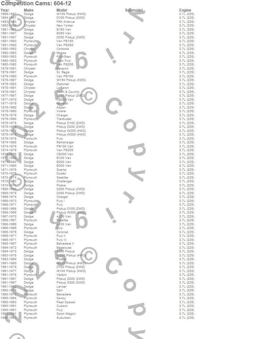 A100 Truck, A100 Van, A108 Van, Aspen, B100 Van, B150 Van, B200 Van, B250 Van, B300 Van, Barracuda, Belvedere, Belvedere II, CB300 Van, Challenger, Charger, Cordoba, Coronet, Custom, D100 Pickup, D150 Pickup more…